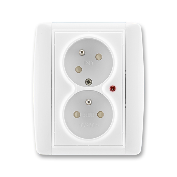 Zásuvka dvojnásobná s ochrannými kolíky, s clonkami, s natočenou dutinou, s ochranou před přepětím